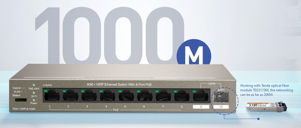 1x Tenda TEG1110PF-8-102W