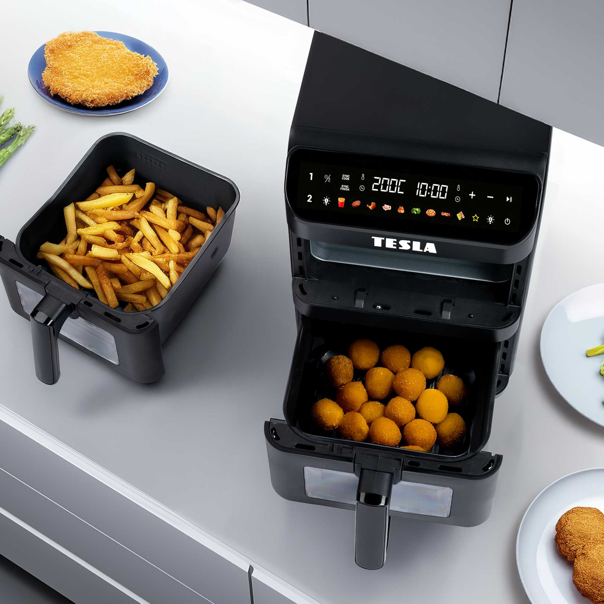 - TESLA AirCook DualZone Q670 XXL, multifunkční duální digitální horkovzdušná fritéza