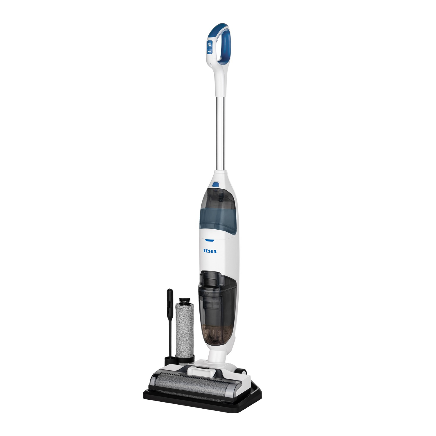 TESLA AquaStar AQ500 integruje vysávání, mytí, sušení a samočištění v jednom zařízení. Vyčistí nečistoty, uklidí chlupy domácích mazlíčků, lepkavé skvrny, vodu a mnoho dalšího. Ušetříte spoustu času a neušpiníte si ruce - jednoduše pohybujte vysavačem dopředu a dozadu, abyste současně vysávali, čistili i vytírali. Nečistoty a špinavá voda budou z podlahy automaticky odsáty.