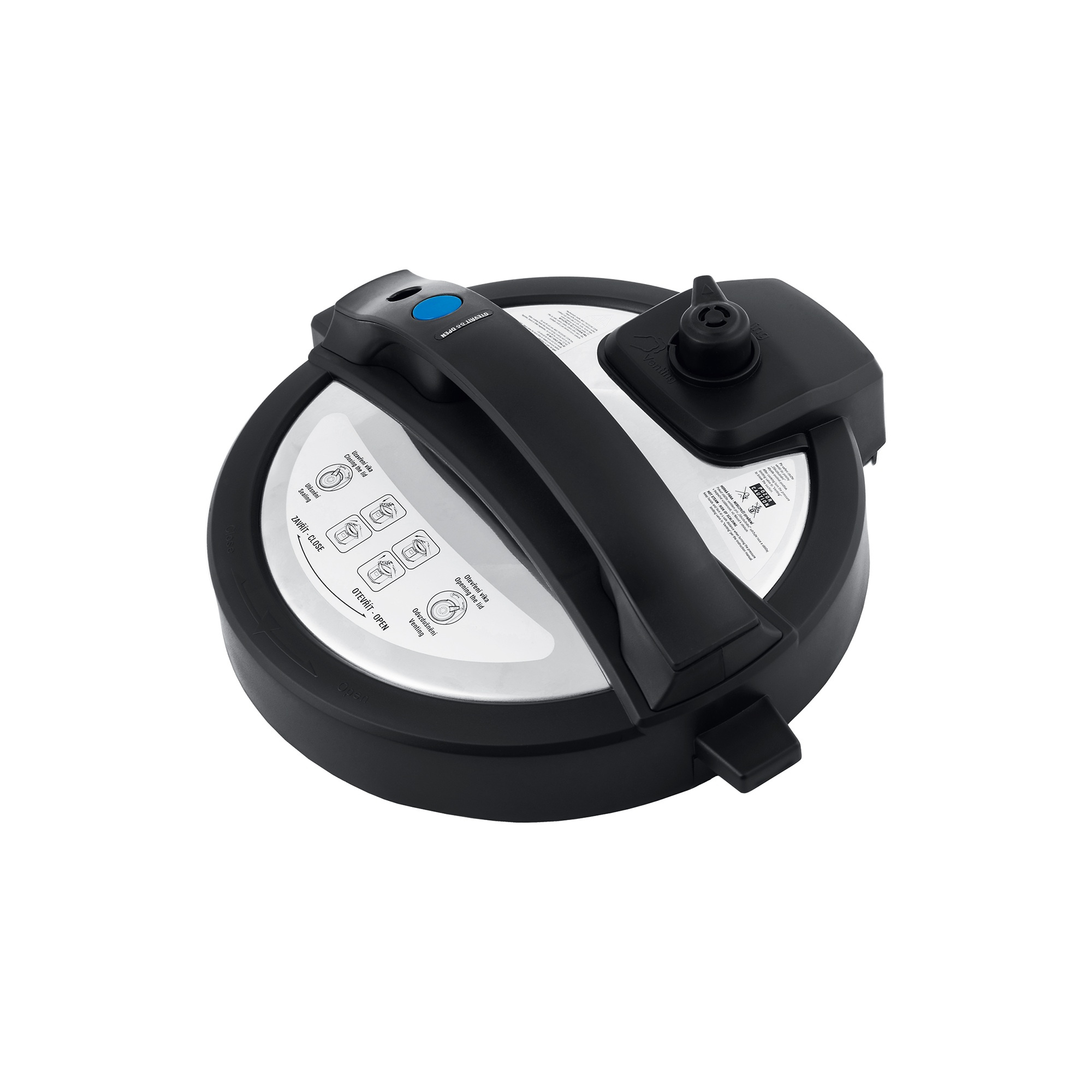- Bezpečnostní systém uzavírání a otevírání víka (dokud je v hrnci tlak, bezpečnostní systém zabraňuje otevření horního víka)