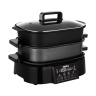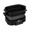 Multifunkční zařízení se skládá z celkem pěti částí - základny, varné nádoby, napařovacího hrnce, grilovací desky a skleněné pokličky. Klasická černá barva s moderním designem zařízení se výborně hodí do každé moderní kuchyně. Skleněná poklička vám umožní kontrolovat průběh přípravy jídla.
