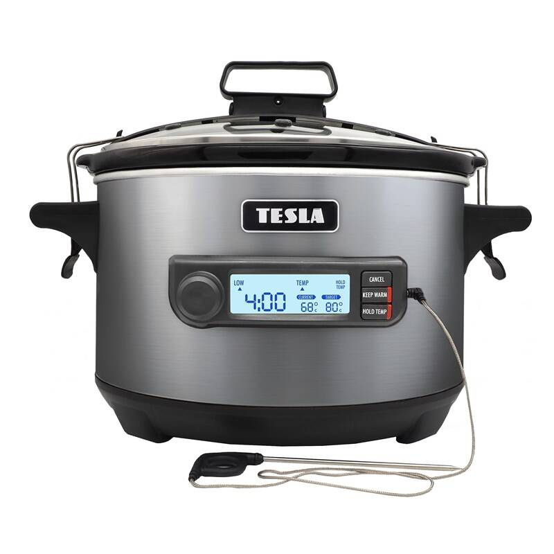 Pomalý hrnec TESLA je výborný pomocník pro všechny, kteří si chtějí připravit plnohodnotné a chutné jídlo, aniž by u vaření trávili dlouhé hodiny. Stačí do něj vložit všechny ingredience, nastavit teplotu s délkou vaření a to je vše. Připravte si šťavnaté a chuťově bohaté jídlo díky moderní technologii Sous vide. Potraviny se vakuově uzavřou a vaří v přesně řízené vodní lázni. Přesnou kontrolu aktuální teploty zajistí integrovaná teplotní sonda. Skleněná poklice je vybavena uzamykacím mechanismem.