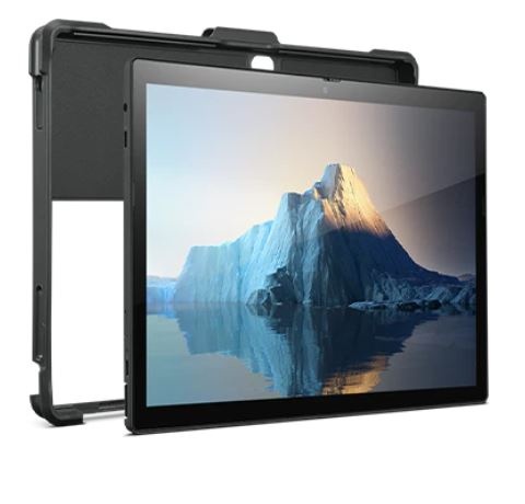 Na míru navržené pouzdro pro ThinkPad X12 Detachable. Navrženo s tenkým, čistým profilem a dokonalou rovnováhou funkčnosti a ochrany. Pouzdro umožňuje plný přístup k funkcím tabletu, včetně stojanu, konektorů, dotykové obrazovky a připojení klávesnice.