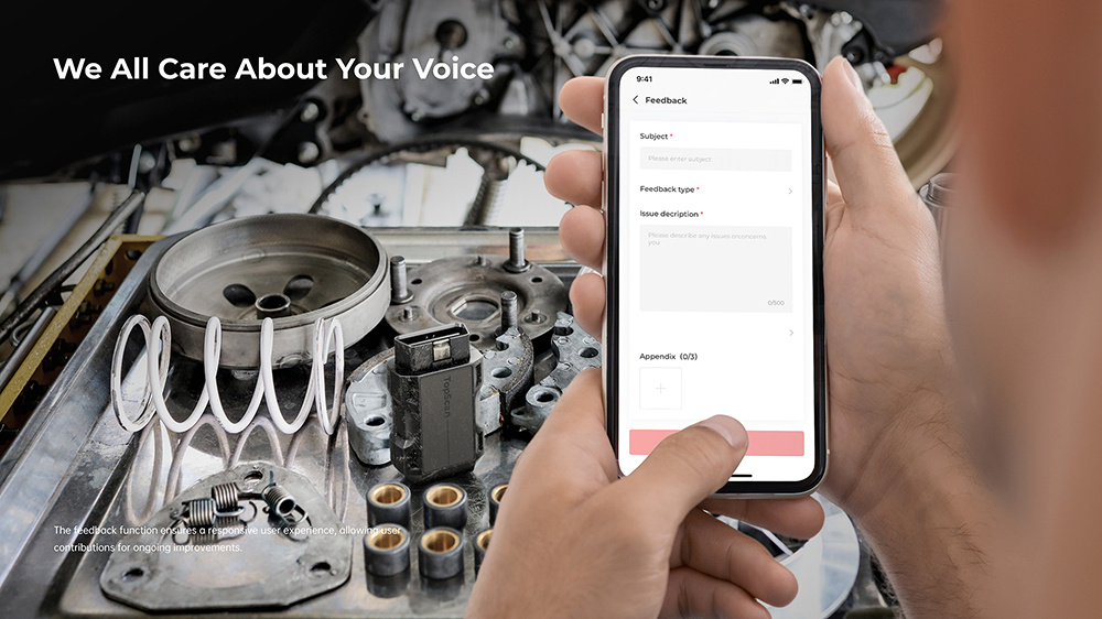 Díky funkci zpětné vazby mohou uživatelé jednoduše sdílet své postřehy přímo s výrobcem. Společnost TOPDON tak může své produkty průběžně vylepšovat na základě skutečných zkušeností a potřeb uživatelů.