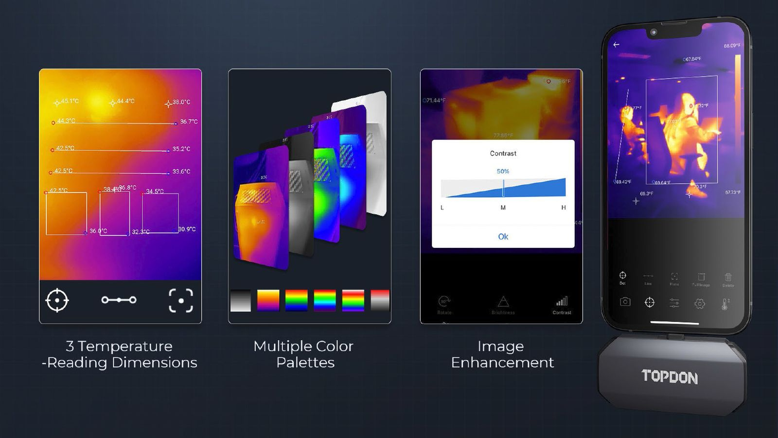 S aplikací TC002 mohou uživatelé ručně vybrat ze tří různých rozměrů pro kontrolu teploty: