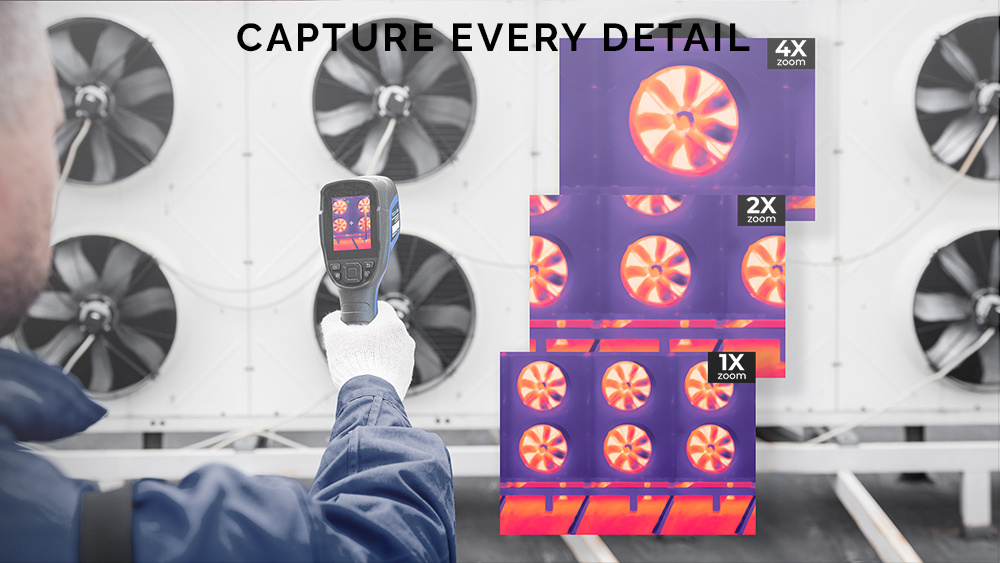Díky nastavitelným úrovním přiblížení 1× / 2× / 4× získáváte maximální flexibilitu při sledování. TC004 Lite vám umožňuje zachytit každý detail – od širokého přehledu při 1× až po precizní analýzu jemných detailů při 4× zvětšení. Tento přizpůsobitelný zoom zajišťuje, že máte vždy ten správný pohled pro jakoukoli situaci.