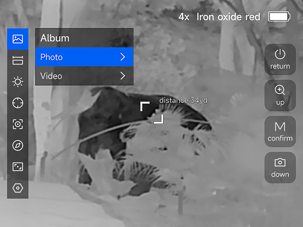 S pěti barevnými paletami – Red-Hot, Iron, Rainbow, White-Hot a Black-Hot – si můžete přizpůsobit zobrazení podle aktuálních podmínek. Tato možnost vám umožní efektivněji detekovat objekty i v těch nejtemnějších prostředích nebo lépe rozpoznat detaily v náročném terénu.