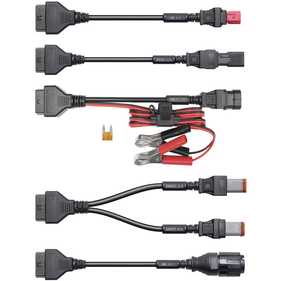 Kabelová sada je navržena pro spolehlivý přenos dat mezi motocyklem a diagnostickým zařízením, což vám usnadní provádění diagnostiky, zjištění závad a optimalizaci výkonu. Tato sada obsahuje značky BMW, Harley, Ducati, Kawasaki, Honda, Yamaha, Suzuki.