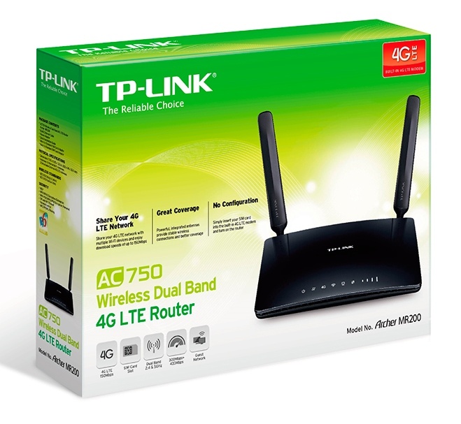 * AC750 Wireless Dual Band 4G LTE Router, Archer MR200