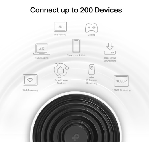 Skutečně třípásmová rychlost – Všechna tři pásma pracují společně a poskytují bleskurychlé připojení až 5 400 Mbit/s pro více než 200 zařízení.