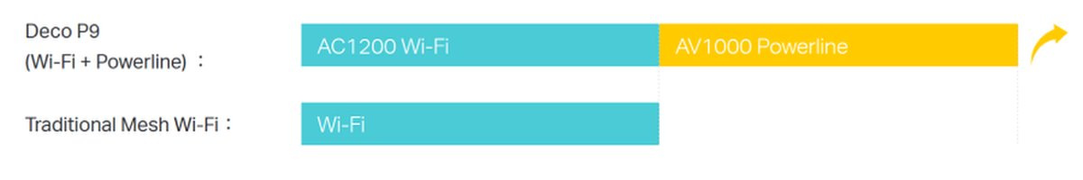 Deco P9 kombinuje duální Wi-Fi a powerline pro vytvoření silnější mesh sítě. Technologie Powerline využívá elektrické rozvody vašeho domu k vytvoření silnějšího propojení mezi jednotkami Deco tím, že snižuje dopad stěn a jiných překážek na signál a poskytuje ještě vyšší rychlosti sítě a skutečně bezproblémové pokrytí.