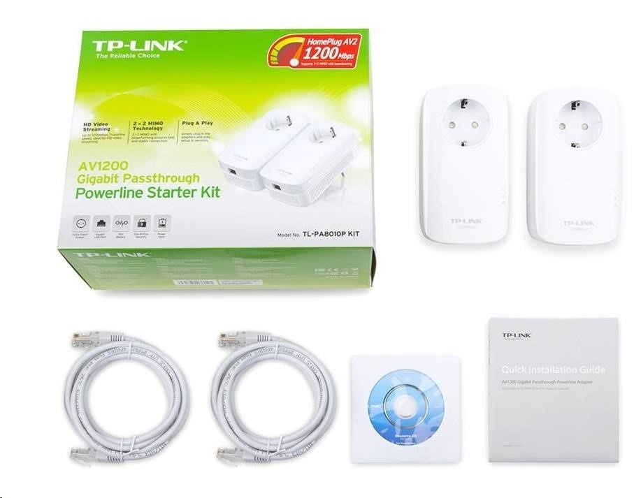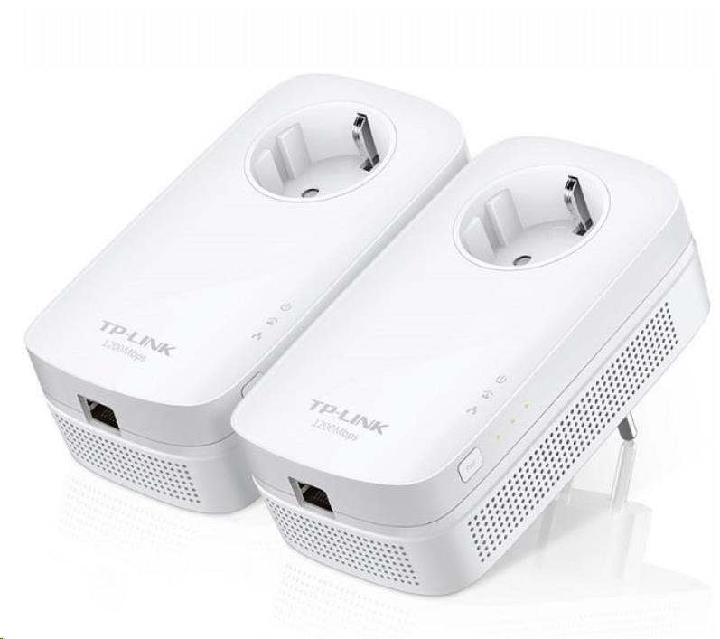 Gigabitová průchozí powerline startovací sada AV1200 TP-LINK TL-PA8010P KIT AV1200 umožní prostřednictvím vaší domácí elektrické sítě internetové připojení z jakékoliv elektrické zásuvky. Jednoduše ji zapojte do elektrické zásuvky a hned můžete využívat HD streamování a hraní her bez nutnosti konfigurace. Díky integrované průchozí zásuvce o žádnou svou nepřijdete! TL-PA8010P KIT je díky rychlosti až 1200 MBit/s umožňující plynulé Ultra HD streamování, online hraní her nebo rychlejší stahování dokonalým společníkem pro domácí zábavu.