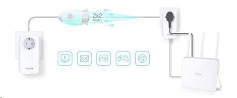 *Technologie MIMO (více vstupů více výstupů) spolu s technologií HomePlug AV2 výrazně zvyšuje rychlost přenosu dat, zejména ve špičkách. Používá dvě elektrické kabelové linky v třídrátové síti pro zvýšení výkonu.