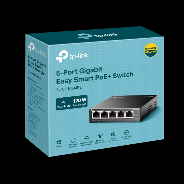 Pro Gigabitový „Plug and Play“ switch TP-Link TL-SG105MPE najdete využití v dohledových systémech v kancelářích, studentských kolejích a malých firmách. Má celkem 5 portů 10/100/1000 Mbit/s RJ45, čtyři z nich jsou 802.3af/at PoE+. Ty dosahují celkového výkonu 120 W (až 30 W na každý port). Díky těmto portům dochází k přenosu napájení i dat jediným kabelem. Switch poskytuje monitorování sítě, řízení provozu podle vašich priorit, funkci VLAN a automatické obnovení PoE.