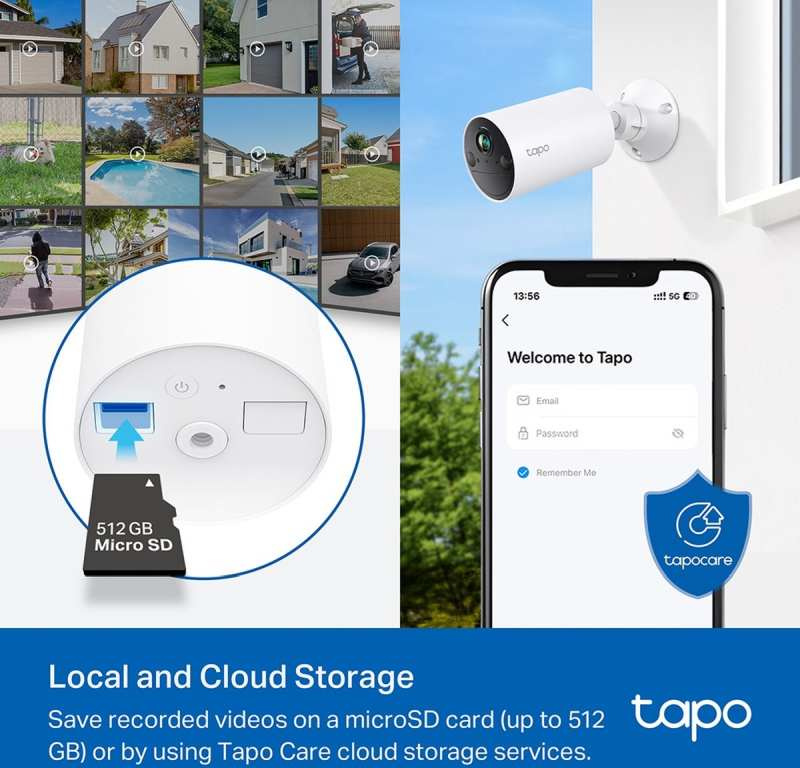 Flexibilní možnosti úložiště: Vyberte si z místního úložiště microSD až do 512 GB nebo ze zabezpečené cloudové služby Tapo Care pro další klid.