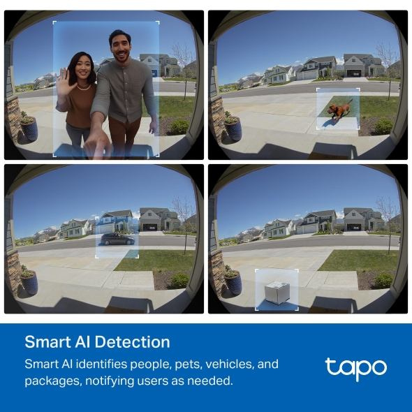Tapo D235 V1 je vybaven funkcemi AI pro detekci osob a domácích mazlíčků a zajišťuje, že budete upozorněni pouze na důležité pohyby. V kombinaci se 180° zorným polem a rozlišením 5 megapixelů poskytuje komplexní pokrytí a křišťálově čistý obraz vašeho prahu.