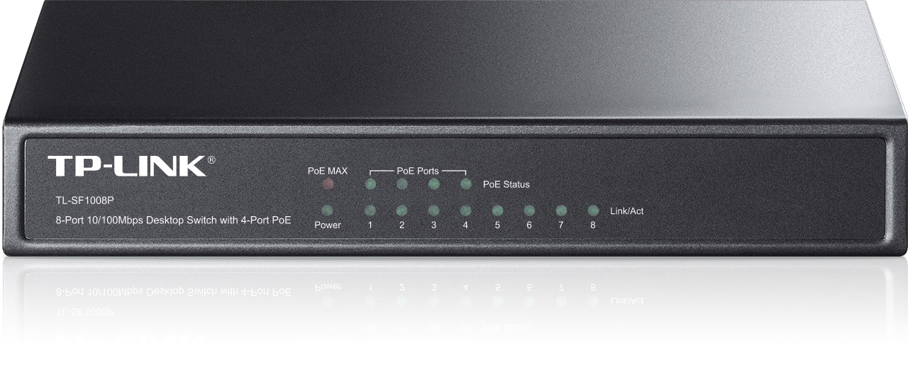 TP-Link TL-SF1008P 8x10/100 (4xPOE) 66W Desktop kovový CCTV Switch