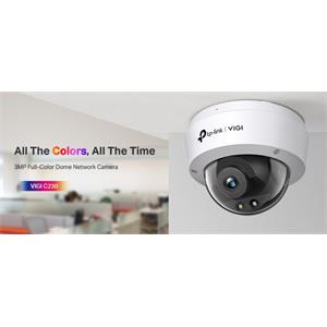 VIGI C230(2.8mm) je 3 megapixelová venkovní DOME kamera značky TP-Link s fixním objektivem 2.8 mm, bílým světlem a IR přísvitem do vzdálenosti 30 m a ethernetovým portem s podporou PoE. Kamera má max. rozlišení 2304 × 1296 px (při 30 fps), pozorovací úhel 108°, 2 nezávislé streamy, krytí IP67, digitální WDR snímač, audio mikrofon, podporu ONVIF, kodeku H.264(+) a H.265(+). Kamera díky větší citlivosti podporuje tzv. Full-Color barevný obraz během celé noci.