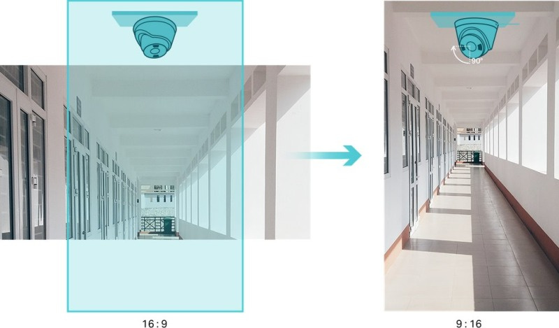 Režim chodby: Umožňuje změnit poměr stran obrazu z 16 : 9 na 9 : 16 a pomáhá tak sledovat dlouhé a úzké oblasti