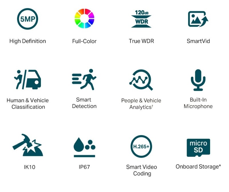 VIGI IP kamera C250(4mm) v provedení dome, disponuje rozlišením 5 MP (2880 X 1620) s fixním objektivem s ohniskovou vzdáleností 4 mm se snímačem 1/2.7'' s citlivostí 0,005 Lux. Kamera díky IR i bílému přísvitu na 30m nahrává barevný (Full-Color) obraz i během noci. Kamera VIGI je vybavena vestavěným mikrofonem, který zaznamenává vše, co se děje v okruhu 5 metrů od kamery. Nechybí slot na microSD karty ani krytí IP67.