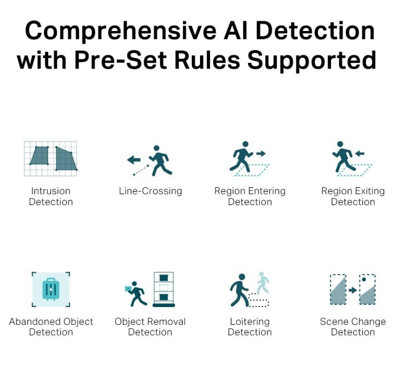Inteligentní Detekce: Aktivně detekuje neobvyklé události, jako je narušení vytyčené oblasti a překročení hranice, a ihned vám zašle oznámení.
