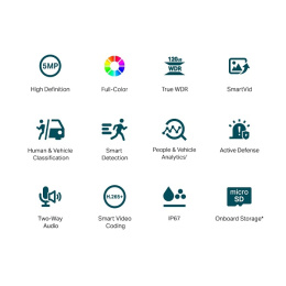 Chytrá událost Klasifikace lidí a vozidel, detekce narušení oblasti, detekce překračování čáry, detekce osob, detekce vozidla, detekce vstupu do regionu, detekce opuštění regionu, detekce opuštění objektu, detekce odstranění objektu, detekce potulování, detekce změny scény