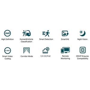 VIGI C420I(4mm) je 2 megapixelová Turret kamera značky TP-Link určená pro vnitřní použití s fixním objektivem 4 mm, IR přísvitem do 30m vzdálenosti a ethernetovým portem s 802.3af PoE. Kamera má max. rozlišení 1920 × 1080 px (při 30 fps), pozorovací úhel 75°, 2 nezávislé streamy, digitální WDR snímač, podporu ONVIF, kodeku H.264(+) a H.265(+).