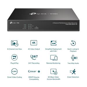 TP-LINK záznamové zařízení VIGI NVR1004H-4P 4 kanálů, 4x Lan s PoE, 2x USB