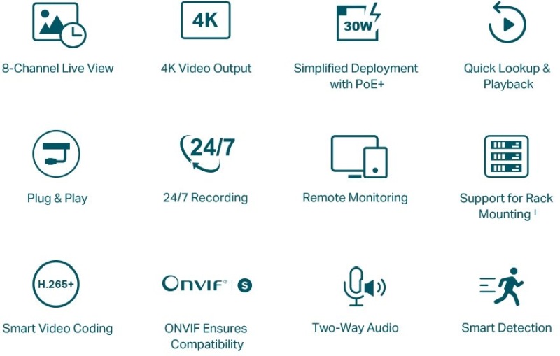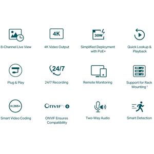 TP-LINK Záznamové zařízení VIGI NVR1008H-8P - NVR, 8 kanálů, 8x PoE