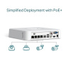 Na záznamovém zařízení najdete čtyři 10/100 Mb/s PoE+ porty. Každý z nich má výkon 30 W. Celkový PoE výkon switche dosahuje 53 W. Pomocí jediného ethernetového kabelu přenáší data i napájení. Nepotřebujete tedy žádný další napájecí adaptér.