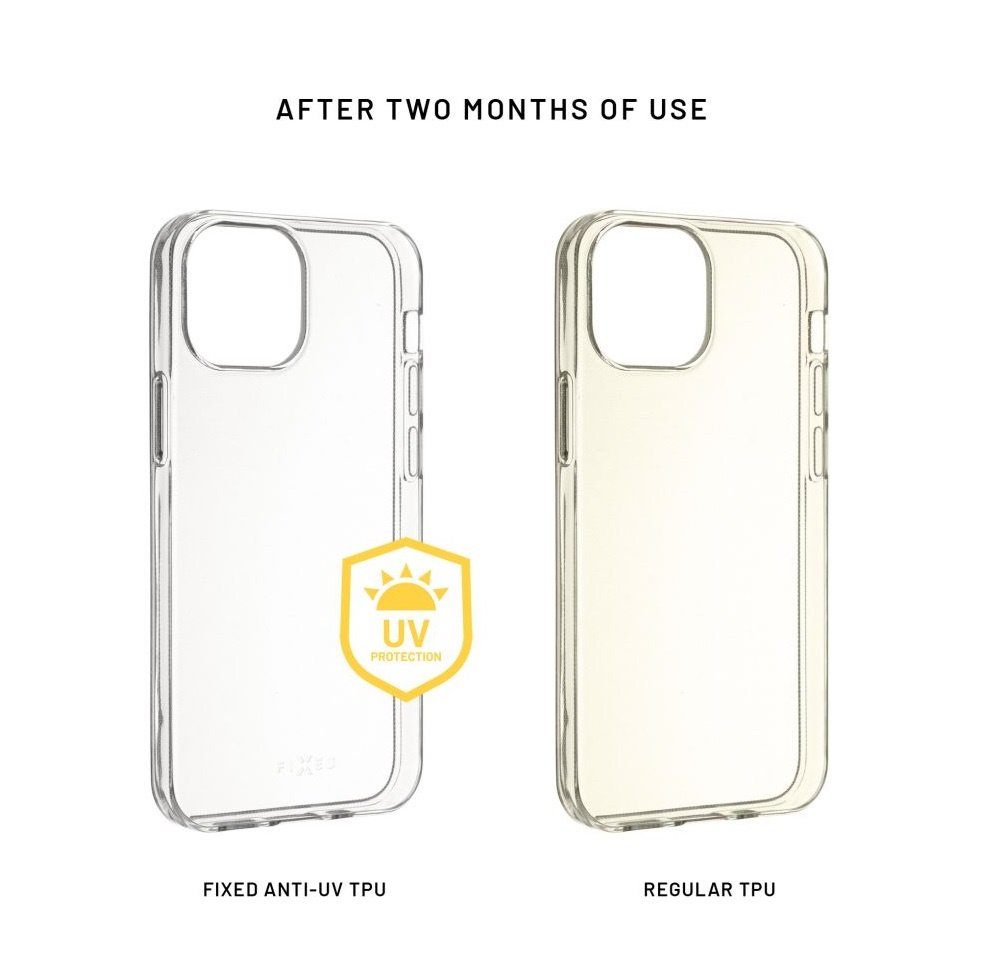Gelové pouzdro FIXED představuje jednoduchou, nenápadnou, a přesto efektivní ochranu vašeho chytrého telefonu. Je vyrobeno ze speciálního TPU materiálu s AntiUV úpravou, která chrání před žloutnutím krytu vlivem slunečního záření. Oproti běžným gelovým krytům tak i po čase zůstává stále jako nové. Pouzdro chrání boky a záda přístroje před poškrabáním, prachem a případnými pády. Plně transparentní provedení nechá vyniknout originálnímu designu vašeho mobilního telefonu. Každé z pouzder FIXED je vyrobeno přesně na míru daného zařízení, nezakrývá nabíjecí ani sluchátkové konektory. Okraje pouzdra lehce přesahují displej a chrání ho tak před poškrábáním, pro maximální ochranu telefonu je však vhodné doplnit pouzdro sklem na displej.