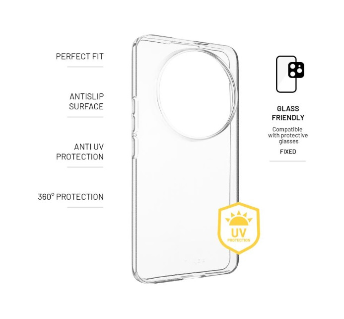 Gelové pouzdro FIXED představuje jednoduchou, nenápadnou, a přesto efektivní ochranu vašeho chytrého telefonu. Je vyrobeno ze speciálního TPU materiálu s AntiUV úpravou, která chrání před žloutnutím krytu vlivem slunečního záření. Oproti běžným gelovým krytům tak i po čase zůstává stále jako nové. Pouzdro chrání boky a záda přístroje před poškrabáním, prachem a případnými pády. Plně transparentní provedení nechá vyniknout originálnímu designu vašeho mobilního telefonu. Každé z pouzder FIXED je vyrobeno přesně na míru daného zařízení, nezakrývá nabíjecí ani sluchátkové konektory. Okraje pouzdra lehce přesahují displej a chrání ho tak před poškrábáním, pro maximální ochranu telefonu je však vhodné doplnit pouzdro sklem na displej.