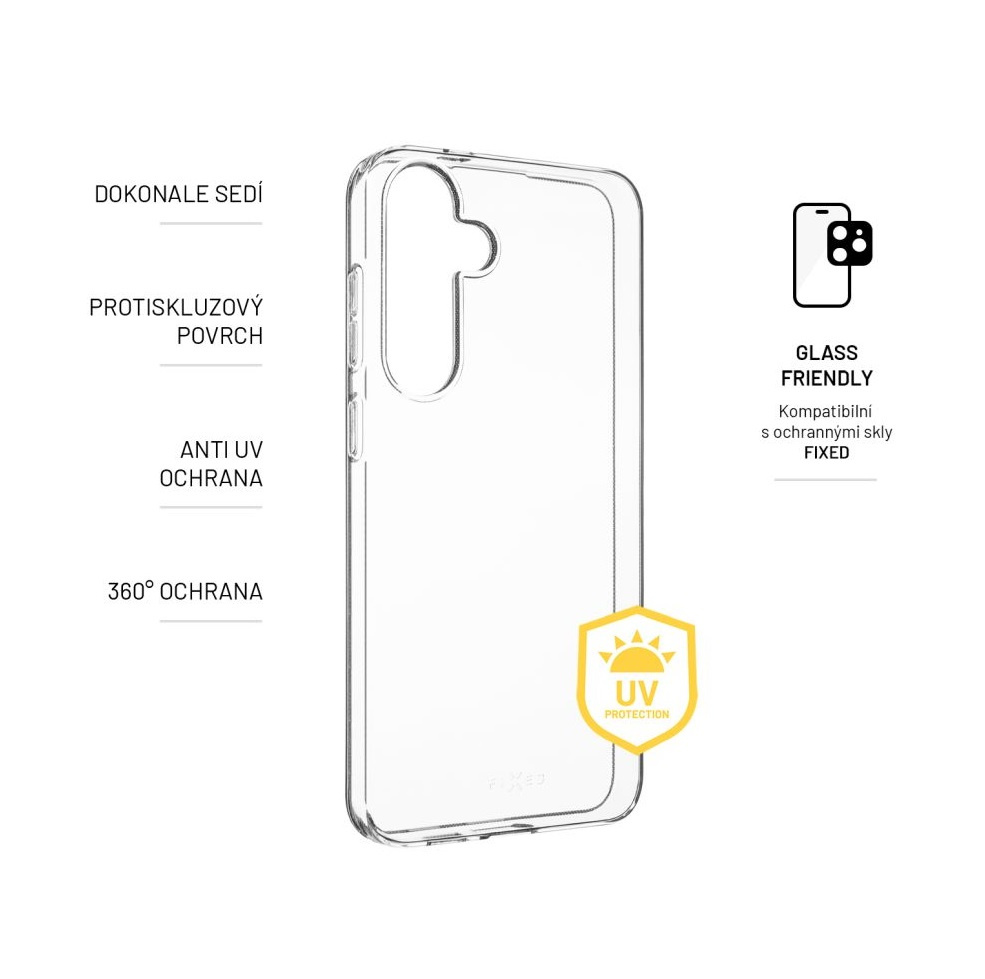 Gelové pouzdro FIXED představuje jednoduchou, nenápadnou, a přesto efektivní ochranu vašeho chytrého telefonu. Je vyrobeno ze speciálního TPU materiálu s AntiUV úpravou, která chrání před žloutnutím krytu vlivem slunečního záření. Oproti běžným gelovým krytům tak i po čase zůstává stále jako nové. Pouzdro chrání boky a záda přístroje před poškrabáním, prachem a případnými pády. Plně transparentní provedení nechá vyniknout originálnímu designu vašeho mobilního telefonu. Každé z pouzder FIXED je vyrobeno přesně na míru daného zařízení, nezakrývá nabíjecí ani sluchátkové konektory. Okraje pouzdra lehce přesahují displej a chrání ho tak před poškrábáním, pro maximální ochranu telefonu je však vhodné doplnit pouzdro sklem na displej.