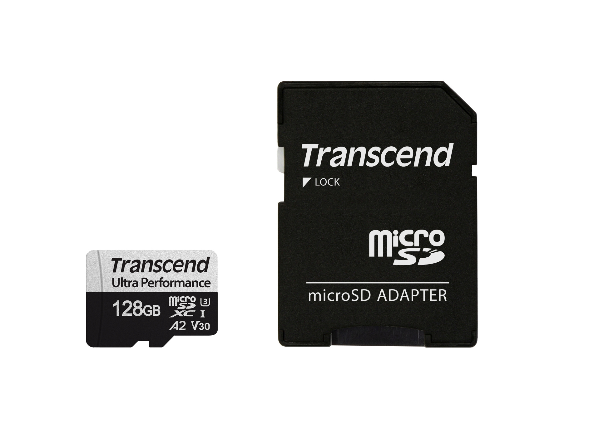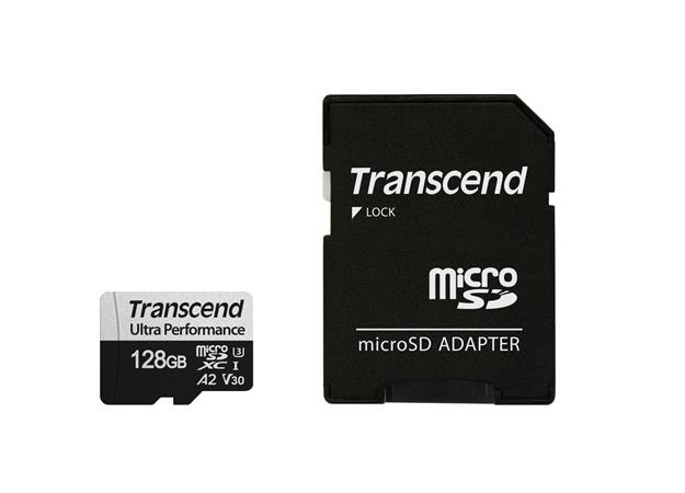 Transcend 128GB Ultra Performance microSDXC 340S UHS-I U3 V30 A2 3D TLC (Class 10) paměťová karta (s adaptérem), 160MB/s R, 125MB/s W