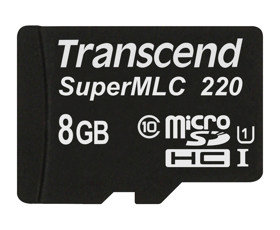 Transcend 8GB microSDHC220I UHS-I U1 (Class 10) SuperMLC průmyslová paměťová karta, 80MB/s R, 45MB/s W, černá