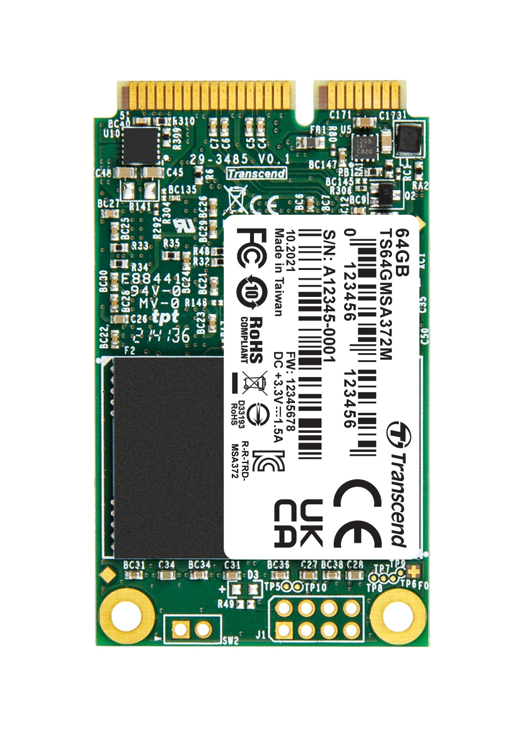 Supporting the Serial ATA interface and built around a powerful controller, Transcend's SATA III 6Gb/s MSA372M mSATA SSD delivers blazing-fast performance, and long-term reliability. The compact mSATA form factor is just one-eighth the size of a standard 2.5" SSD, making it perfect for use in space-constricted portable devices such as Ultrabooks, tablet PCs, and slim servers.