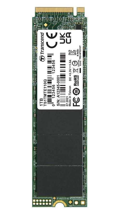 Transcend's PCIe SSD 110Q follows NVMe 1.3 and utilizes the PCIe Gen3 x4 interface, meaning four lanes are used for transmitting and receiving data simultaneously, resulting in compelling performance of up to 2,000MB/s read and 1,500MB/s write.