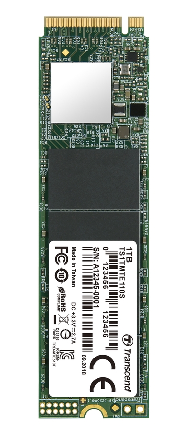 Transcend's PCIe SSD 110S follows NVMe 1.3 and utilizes the PCIe™ Gen3 x4 interface, meaning four lanes are used for transmitting and receiving data simultaneously, resulting in compelling performance of up to 1,800MB/s read and 1,500MB/s write.