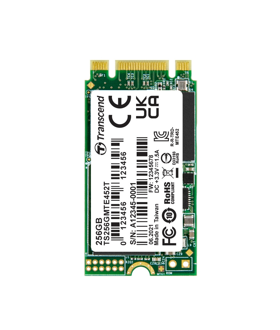 Transcend's MTE452T M.2 SSD features the PCI Express (PCIe) Gen 3 x2 interface and is compatible with NVM Express (NVMe) 1.3 specifications to achieve never-before-seen transfer speeds. The MTE452T features state-of-the-art 3D NAND technology, which allows 96 layers of 3D NAND flash chips to be vertically stacked. Compared to 3D NAND at 64 layers, this density breakthrough greatly improves storage efficiency. The MTE452T is built with DRAM cache for fast access, and is fully tested in-house to guarantee reliability in mission-critical applications, boasting an endurance rating of 3K Program/Erase cycles.
