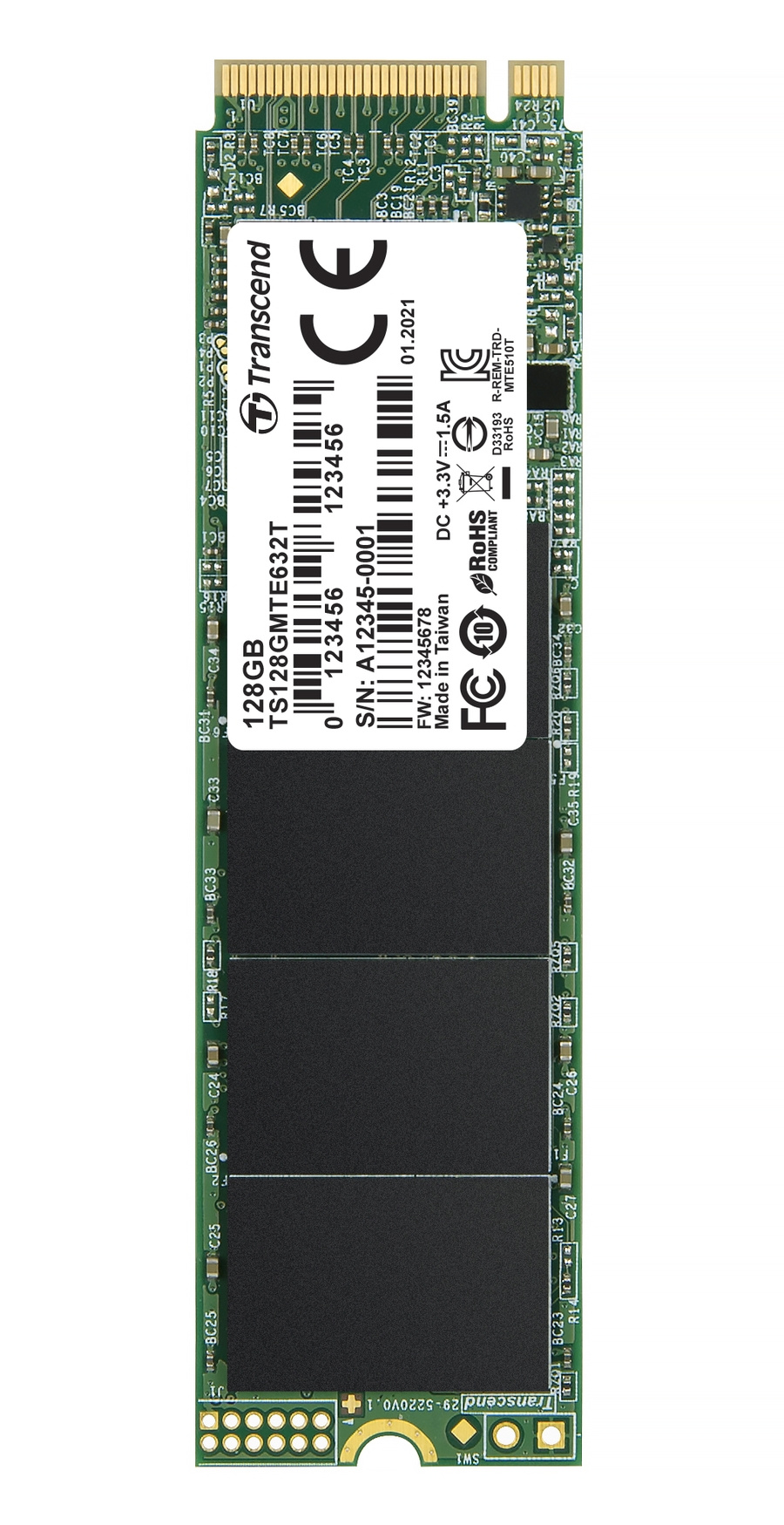 TRANSCEND MTE632T 128GB Industrial 3K P/E SSD disk M.2, 2280 PCIe Gen3 x4 NVMe 1.3 (3D TLC), 1700MB/s R, 900MB/s W