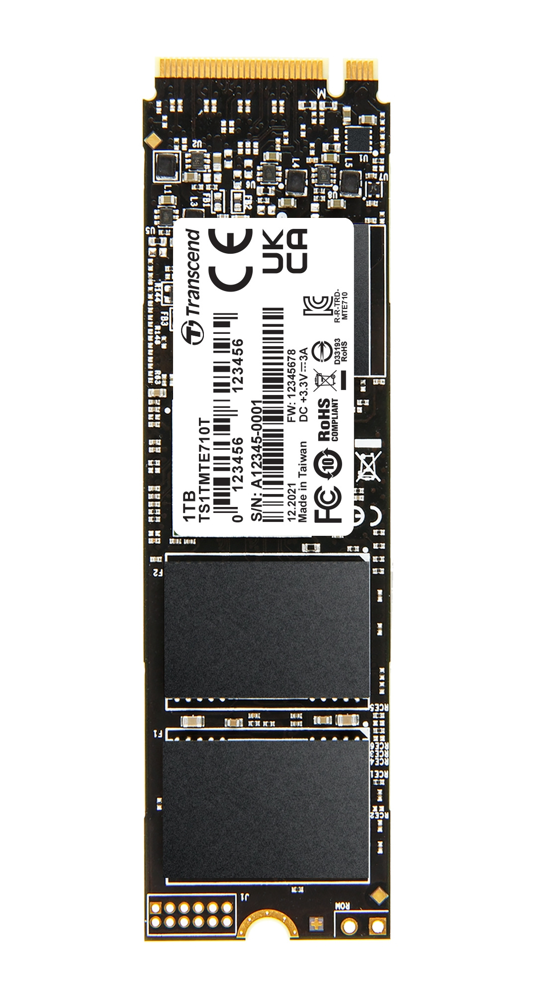 Transcend's M.2 SSD MTE710T features the PCI Express (PCIe) Gen 4 x4 interface and is compatible with NVM Express (NVMe) 1.4 specifications to achieve never-before-seen transfer speeds. The MTE710T features state-of-the-art 3D NAND technology, which allows 112 layers of 3D NAND flash chips to be vertically stacked. Compared to 3D NAND at 96 layers, this density breakthrough greatly improves storage efficiency, and its built-in DRAM cache allows faster access. Applied with 30µ" gold finger PCB and Corner Bond technology, the MTE710T is fully tested in-house to guarantee reliability in mission-critical applications, boasting an endurance rating of 3K Program/Erase cycles and an extended operating temperature ranging from -20 °C ~ 75 °C?.