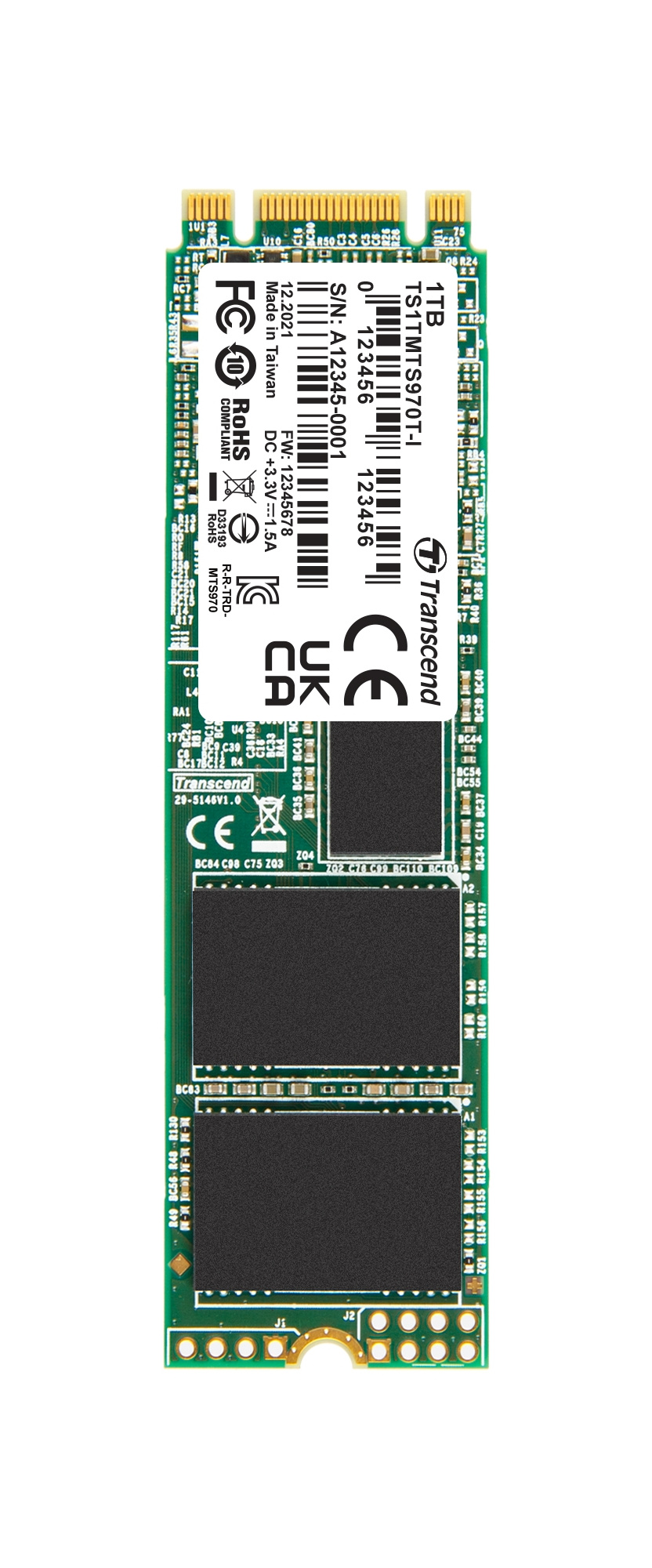 Transcend's M.2 SSD MTS970T-I features the SATA III 6Gb/s interface and the state-of-the-art 3D NAND technology, which allows 112 layers of 3D NAND flash chips to be vertically stacked. Compared to 3D NAND at 96 layers, this density breakthrough greatly improves storage efficiency, and its built-in DRAM cache allows faster access. Applied with 30µ" gold finger PCB and Corner Bond technology, the MTS970T-I is fully tested in-house to guarantee reliability in mission-critical applications, boasting an endurance rating of 3K Program/Erase cycles and an extended operating temperature ranging from -40°C ~ 85°C, to ensure sustained functionality, enhanced endurance and optimal reliability in mission-critical applications.