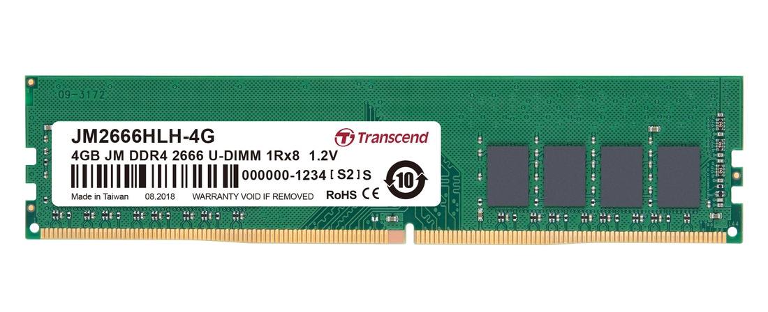 Transcend's JetRam memory modules are manufactured with true ETT grade, brand-name DRAM chips that have passed Transcend's strict screening process and rigorous environmental testing. The modules provide excellent compatibility and fully-tested reliability, which is ideal for PC upgrade at an attractive price. Each memory module is rated at 2666MHz to greatly increase data transmission efficiency by higher bandwidth of up to 21GB/s. Operated at a nominal voltage of just 1.2V, Transcend's DDR4 U-DIMM JetRam memory ensures that both operating temperature and electrical load on the memory controller can be reduced in order to save up to 40% of energy compared to standard DDR3 modules offering 1.5V.