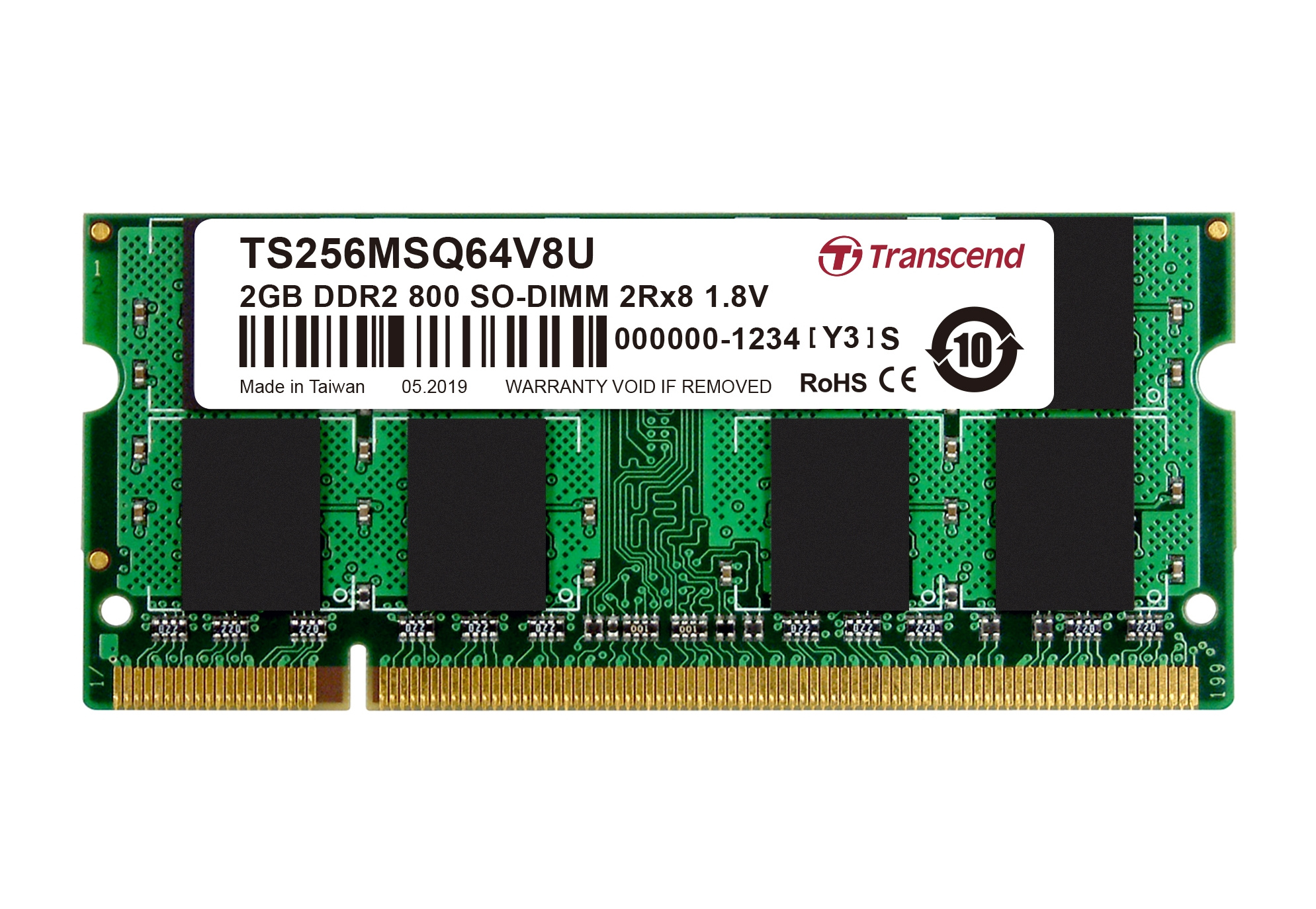 TRANSCEND - TS256MSQ64V8U - MEMORY, 2GB, SODIMM, DDR2, 800MHZ