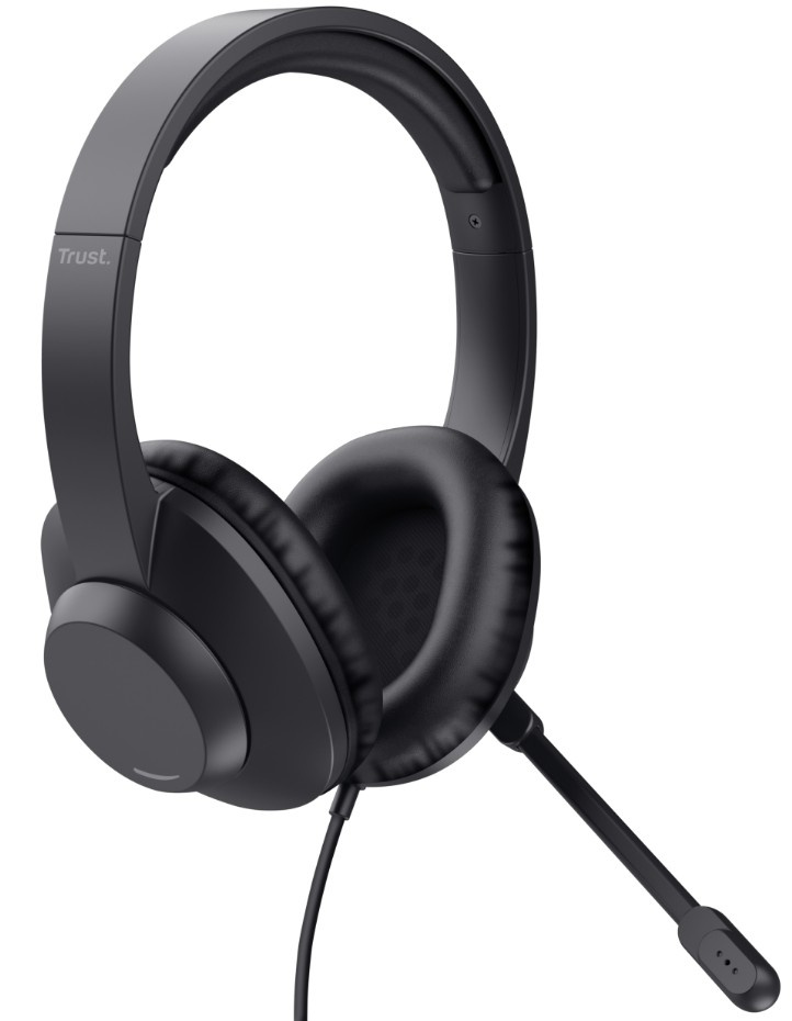 Pohodlná náhlavní souprava USB přes uši s měkkými náušníky a polstrovanou hlavovou páskou