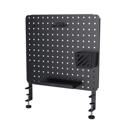 Kovový organizér na stůl s děrovanou deskou pro udržení čistého a organizovaného herního prostoru.