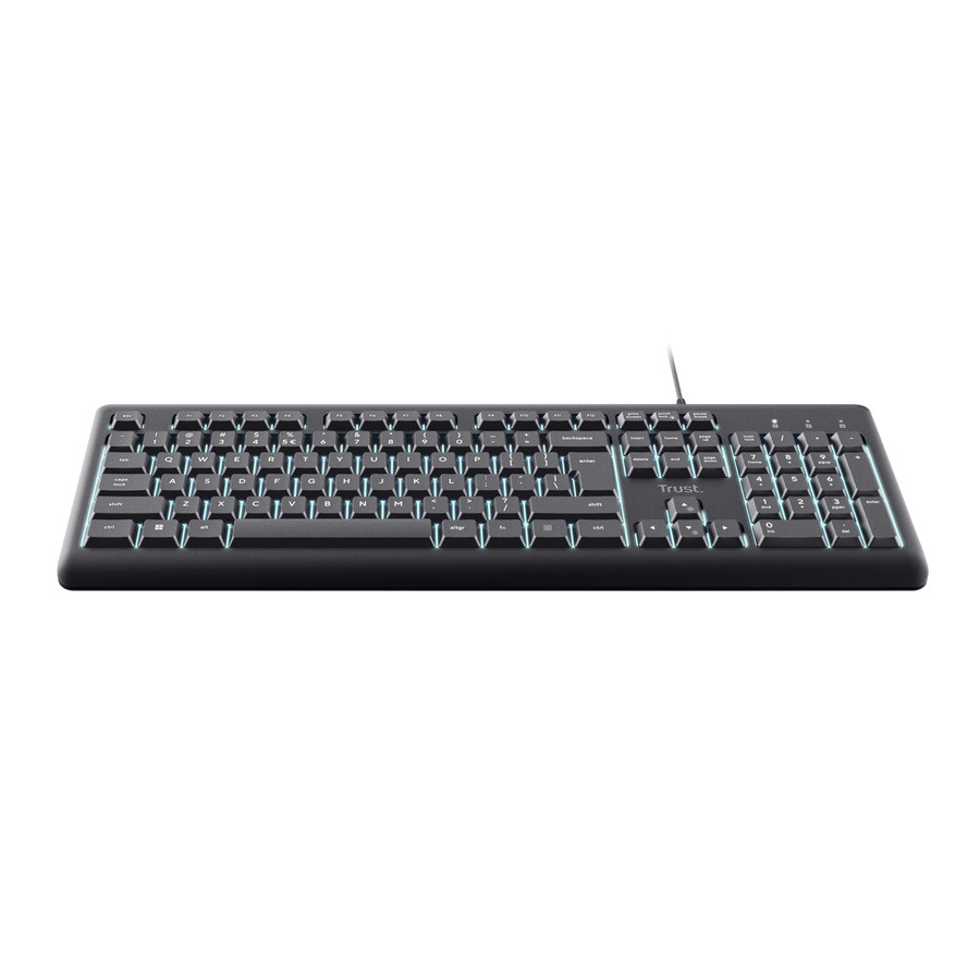 Pracujte nepřetržitě s klávesnicí Trust Primo Illuminated. Tato tichá klávesnice je vybavena podsvícenými klávesami LED pro snadné čtení bez ohledu na denní dobu. Umožňuje úpravu jasu pomocí kláves Fn podle svého prostředí. Klávesnice je vyrobena ze 70 % recyklovaných plastů pro vyšší produktivitu.
