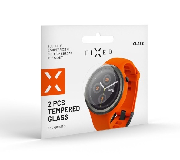 Vysoce kvalitní temperované tvrzené sklo FIXED je ideální volbou pro ochranu displeje vašich hodinek. Předejdete tak neštěstí v podobě škrábanců nebo prasklého displeje. Speciální 2,5 D technologie skla je určena přímo pro displej se zaoblenými okraji. Se svou minimální tloušťkou téměř nijak nezvětšuje rozměry hodinek. Sklo má vysokou citlivost, ovládání dotykového displeje zůstane stejně přirozené jako na displeji bez skla. Ochranné sklo disponuje vysokým stupněm odolnosti proti různým škrábancům a rýhám. Díky 100% průhlednosti zůstanou barvy displeje hodinek stejně zářivé i po instalaci skla. Oleofobní úprava skla zamezí různým šmouhám a otiskům prstů na displeji. V balení najdete 2 ks ochranného skla a vše potřebné pro snadnou a rychlou instalaci.