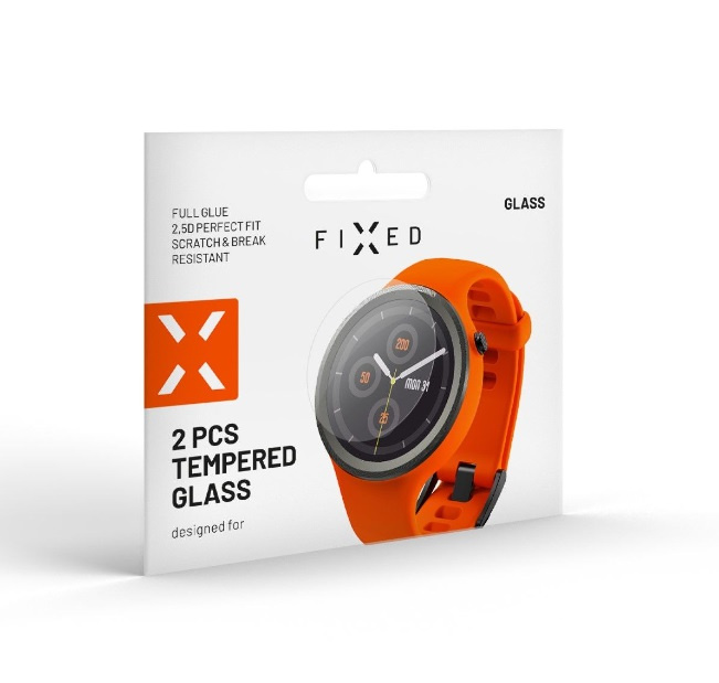 Vysoce kvalitní temperované tvrzené sklo FIXED je ideální volbou pro ochranu displeje vašich hodinek. Předejdete tak neštěstí v podobě škrábanců nebo prasklého displeje. Speciální 2,5 D technologie skla je určena přímo pro displej se zaoblenými okraji. Se svou minimální tloušťkou téměř nijak nezvětšuje rozměry hodinek. Sklo má vysokou citlivost, ovládání dotykového displeje zůstane stejně přirozené jako na displeji bez skla. Ochranné sklo disponuje vysokým stupněm odolnosti proti různým škrábancům a rýhám. Díky 100% průhlednosti zůstanou barvy displeje hodinek stejně zářivé i po instalaci skla. Oleofobní úprava skla zamezí různým šmouhám a otiskům prstů na displeji. V balení najdete 2 ks ochranného skla a vše potřebné pro snadnou a rychlou instalaci.