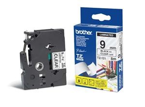 Originální kazeta s páskou Brother TZe-121 - černý tisk na průsvitné, šířka 9 mm